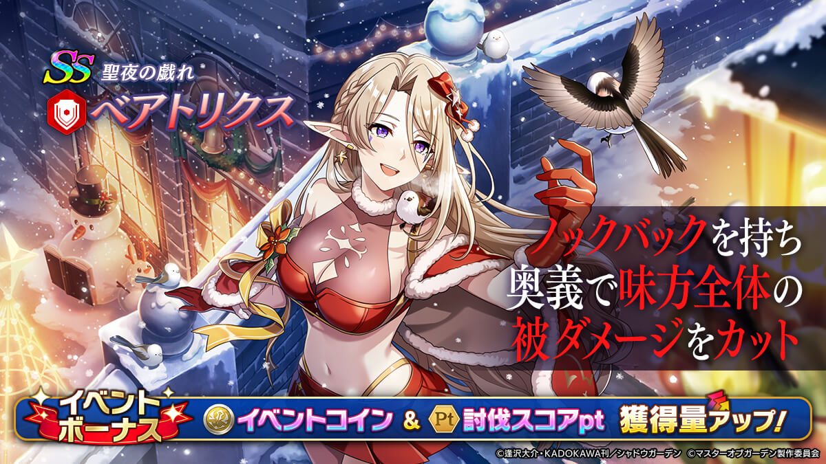 期間限定キャラ[聖夜の戯れ]ベアトリクスがピックアップされたガチャを開催いたします。